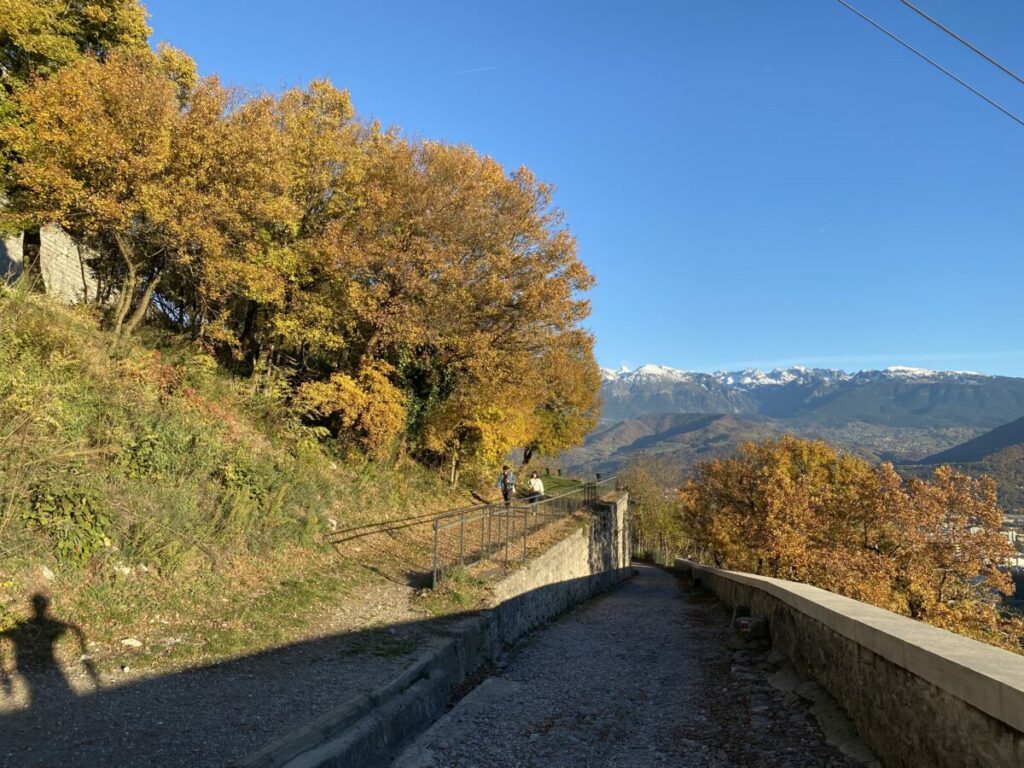 Plus qu’un dernier virage avant d’apercevoir le sommet de la Bastille. La fatigue commence à se faire sentir. Le chemin semblait interminable: les montées rudes, les zigzags qui se répètent et les mollets qui hurlent de douleur. Mais, finalement, est-ce que tout ça ne valait pas le coup après avoir aperçu un bout du palimpseste grenoblois ?
