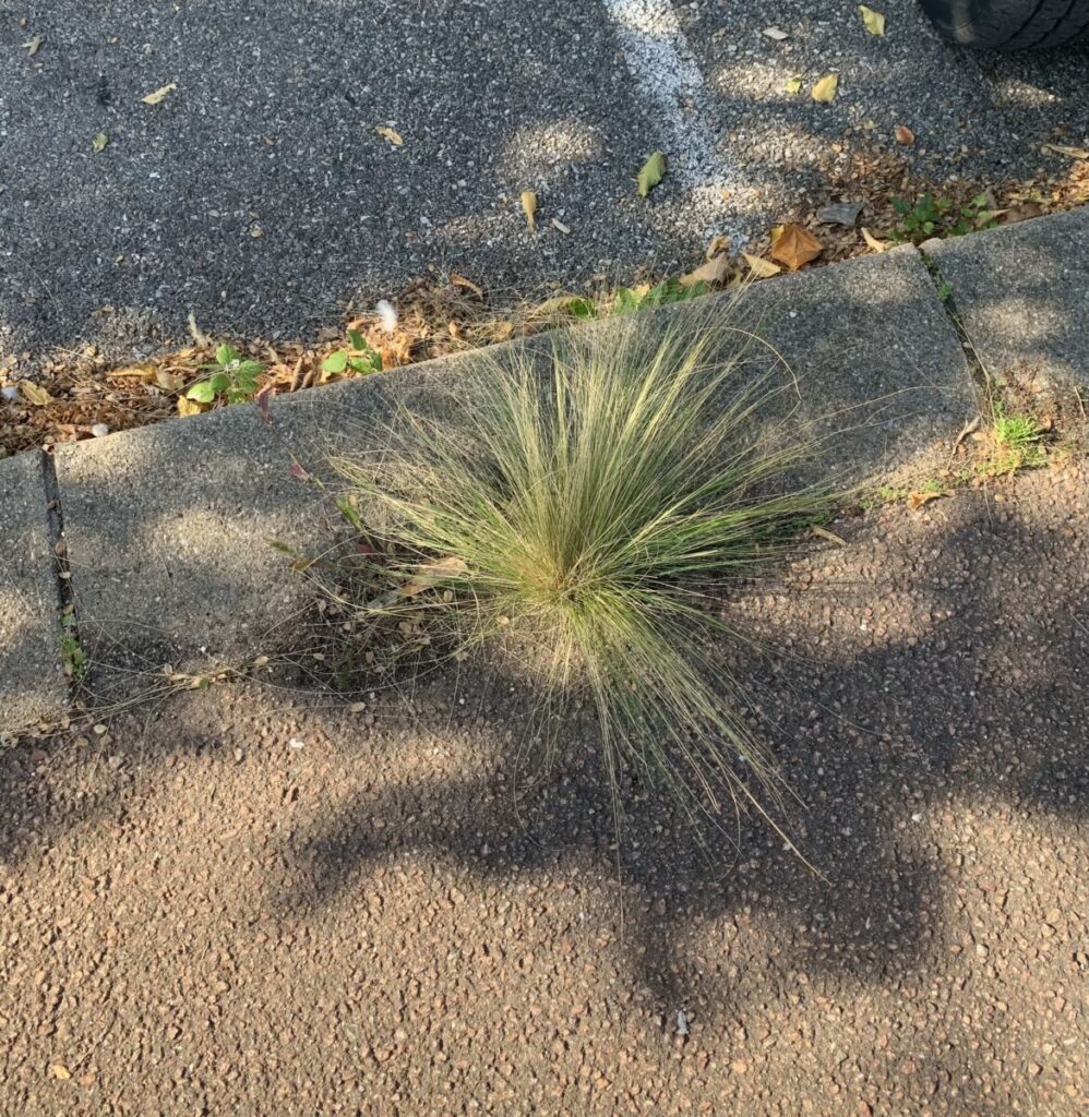 Une touffe d’herbe dont je ne saurais donner le nom mais dont la simple présence m’étonna beaucoup. Petite, je me souviens que ma grand-mère en avait planté devant chez elle, je me servais des longues tiges fines pour faire des tressages, des nœuds mais surtout de faux nids d’oiseaux, persuadée qu’un oiseau le trouverait et s’en servirait comme nouvelle maison.