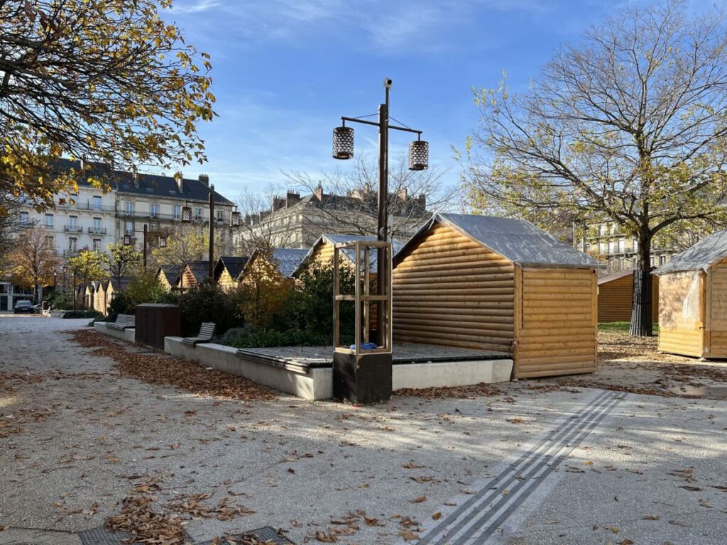 Avec l’hiver, la place change de visage. Fermée temporairement pour les travaux du marché de Noël. Cette métamorphose rompt l’habitude du lieu. D’un espace ouvert et animé, elle devient cloisonnée, interdite, les barrières repoussants les passants. La végétation aussi se transforme: les feuilles tombent, les fleurs fanent. La place semble alors perdre sa vitalité, comme endormie, attendant la renaissance festive de fin d’année.