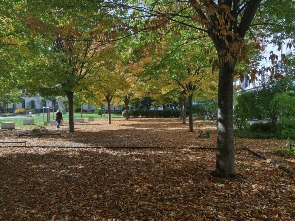 L’automne y est mis en scène par les arbres, qui oscillent entre le rouge flamboyant et les derniers verts tenaces. Ce n’est pas seulement une beauté visuelle, c’est aussi une ambiance sonore. Le vent rafraîchissant fait tomber les feuilles, et leur crissement se mêle au clapotis des bassins et de la pluie, créant un calme ambigu. Par ciel lourd, l’atmosphère est intime ; sous un soleil éphémère, elle s’ouvre, invitant à la détente.