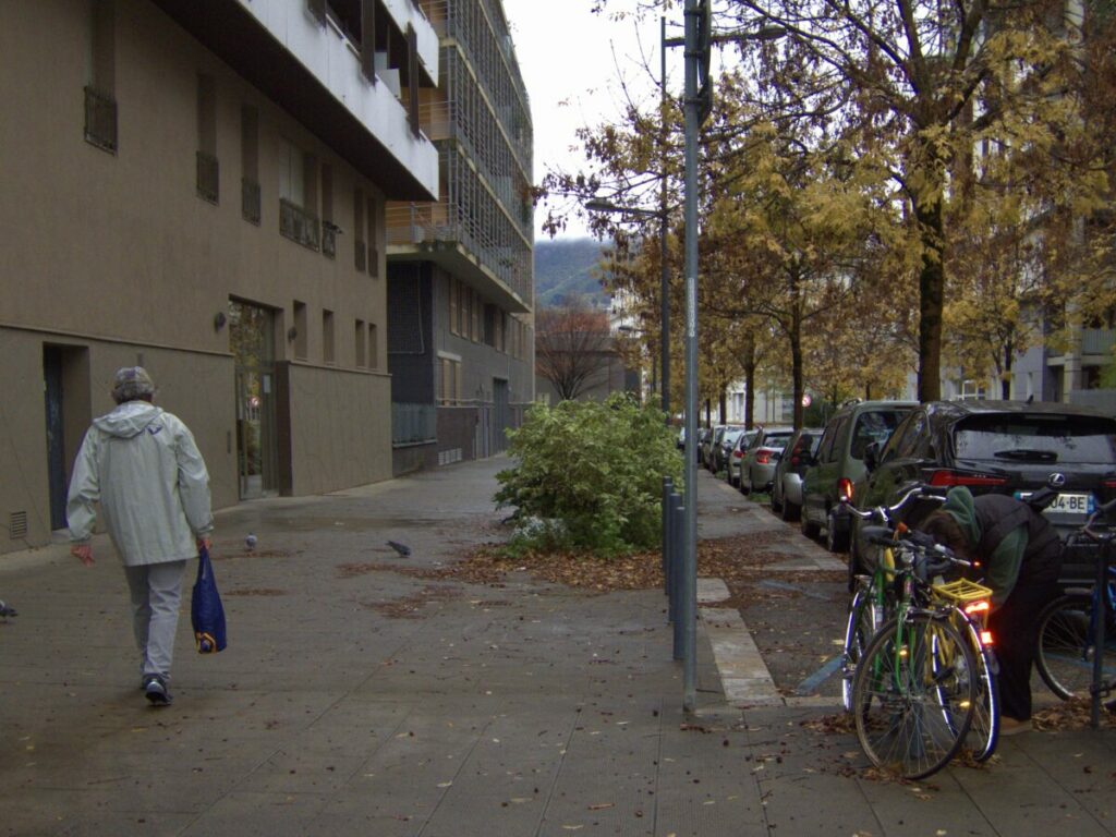 Je marche sur une rue calme, presque vide, puis je m’installe sur les marches froides d’un immeuble de la rue Lazare Carnot. Ma montre indique 17h45 : l’heure de pointe, paraît-il. Petit à petit, je me détends, et mes sens s’habituent à ce « faux » silence : au loin, les rues voisines grondent encore, un bruit de circulation et l’odeur des pots d’échappement qui finit par envelopper tout l’air. Des voitures tournent à la recherche d’une place. Des gens passent, un chien en laisse, un sac de courses à la main, tous avançant tranquillement, comme si le calme du quartier imposait son rythme. Ensemble, ils composent une petite symphonie de pas, de murmures et de froissement humide des imperméables. Un orchestre agréable et doux, en fort contraste avec la cacophonie du bus.