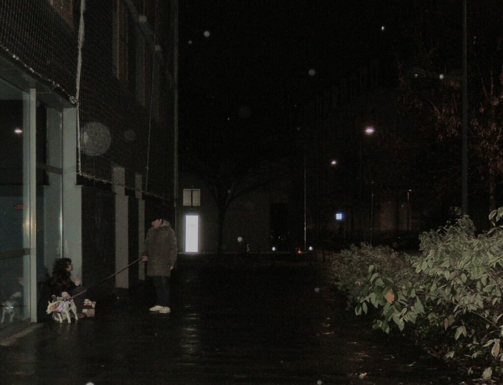 Le concert dans lequel j’étais plongé se brise soudain : un horodateur sonne, puis une porte vitrée s’ouvre derrière moi. Un souffle chaud s’échappe de la porte ouverte, futile, et laissant derrière lui un froid humide semblant plus intense.